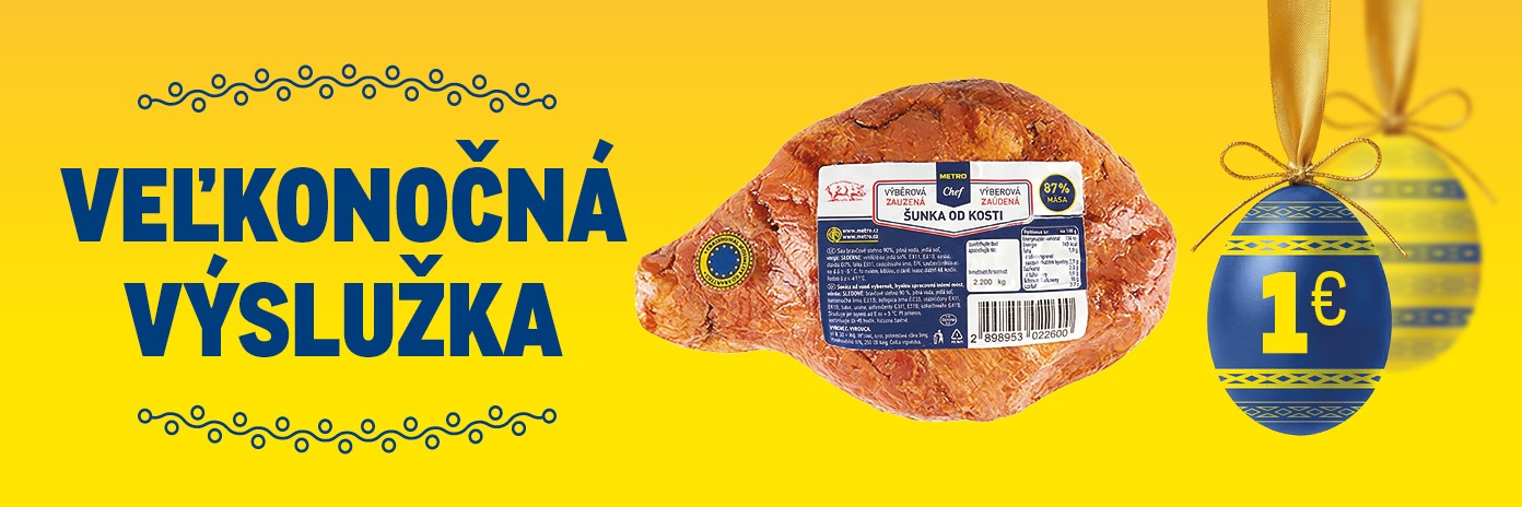 Akcia platí pre registrovaných zákazníkov pri osobnom odbere vo veľkoobchodných strediskách METRO Cash & Carry SR po splnení nákupného limitu 99 € s DPH. Na jednu zákaznícku registráciu je možné denne získať maximálne 1 veľkonočnú výslužku (1× METRO Chef Šunka od kosti) za výhodnú cenu. Nákup nie je možné rozdeliť na viac faktúr. Do hodnoty nákupu sa nezapočítava nákup pohonných hmôt, tabakových výrobkov, vratných obalov a nákup zložený prevažne z liehovín. Túto jedinečnú ponuku získate iba vo veľkoobchodnom stredisku, v ktorom uskutočníte svoj nákup. Pri vyzdvihovaní zľavového produktu – METRO Chef Šunka od kosti – sa preukážte faktúrou s nablokovaným zľavovým produktom. METRO Chef Šunka od kosti ako veľkonočná výslužka sa bude vydávať v pokladničnom priestore veľkoobchodných stredísk METRO Cash & Carry.