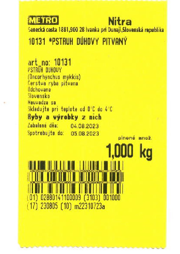 Zákazníci METRO Cash & Carry nájdu na balení výrobkov z čerstvých rýb údaje o rybolovnej oblasti (a príp. podoblasti) – toto označenie je predpísané zákonom pre celú Európu. Pomocou uvedeného kódu sa môžete informovať o príslušnej rybolovnej oblasti, tamojších populáciách rýb a prognózach pre vývoj miestnych húfov.