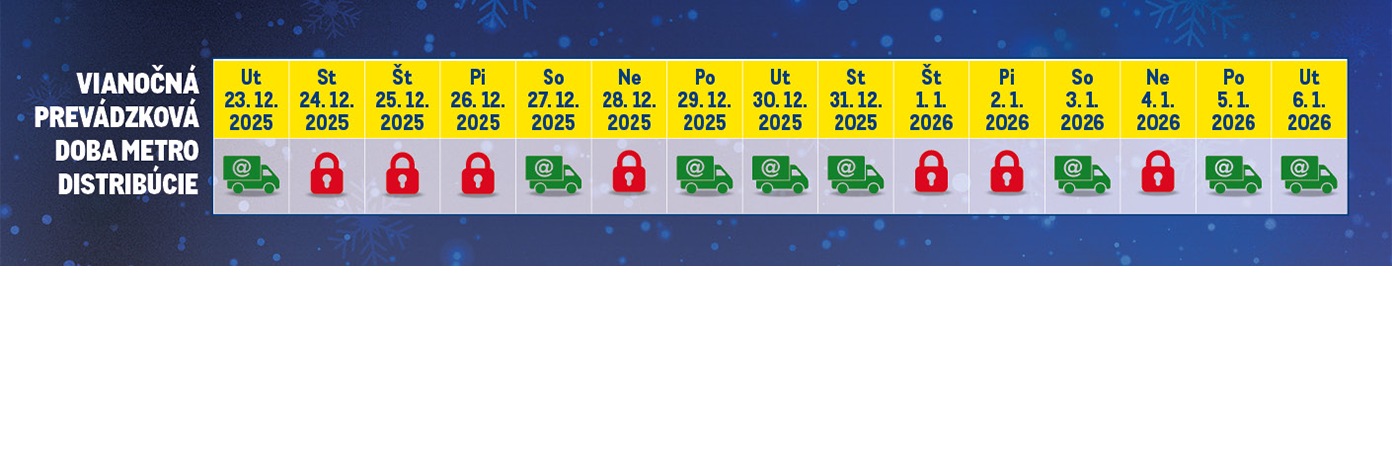 radi by sme Vás informovali o fungovaní služby METRO Distribúcie v období vianočných sviatkov a Nového roku.
