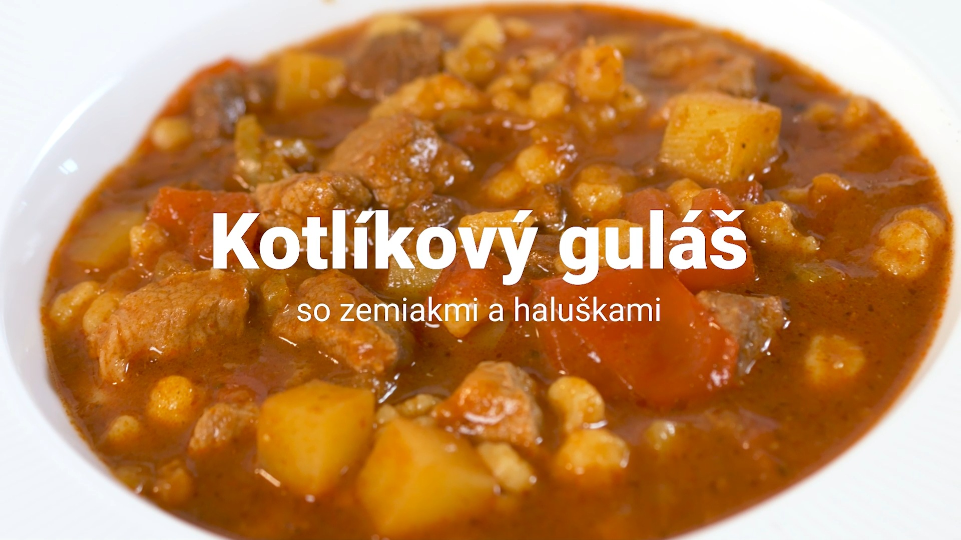 Keď je bravčové mäso z 2/3 mäkké, pridáme zvyšné na menšie kocky nakrájané zemiaky.