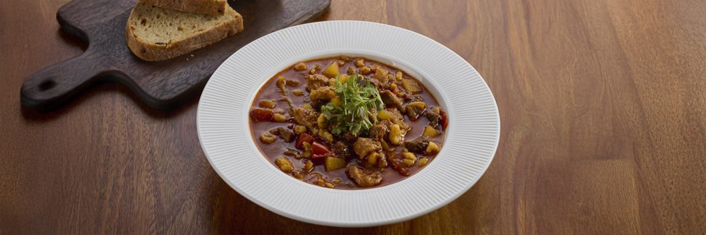 Hovädzie mäso dusíme približne hodinu, až kým nie je takmer mäkké. Potom pridáme bravčové mäso. Pokračujeme v dusení, kým sa aj bravčové mäso takmer nezmäkne.