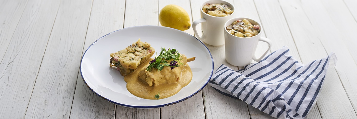 Králik na smotane s hrnčekovými knedľami
