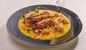 Krémová tarhoňa so šafranom, pecorinom a krevetami