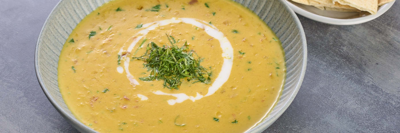 Polievka z červenej šošovice so zázvorom, kurkumou a kokosovým mliekom