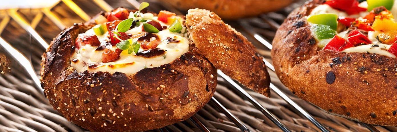Syrové sedliacke mini-fondue konzumujeme pomocou upečeného vršku zo žemličiek, ktorý nám poslúži nielen ako príloha, ale aj ako lyžica.