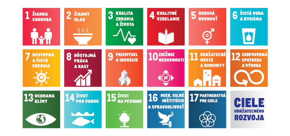 Tieto ciele sa týkajú rôznych aspektov udržateľného rozvoja vrátane odstránenia chudoby, zlepšenia vzdelávania, podpory zdravia a blahobytu, dosiahnutia rovnosti pohlaví, udržateľného hospodárskeho rastu, ochrany životného prostredia a mnohých ďalších oblastí. Každý cieľ má svoje vlastné ciele a ukazovatele, ktoré slúžia ako merateľné ciele na sledovanie pokroku v dosahovaní udržateľného rozvoja. SDGs sú významným nástrojom pre zameranie svetových úsilí na riešenie sociálnych, environmentálnych a ekonomických výziev s cieľom dosiahnuť udržateľný rozvoj a zlepšiť životné podmienky ľudí po celom svete. Našimi rôznorodými aktivitami prispievame k napĺňaniu všetkých 17 Cieľov udržateľného rozvoja Agendy 2030, ale najmä k cieľom: 2 Žiadny hlad, 8 Dôstojná práca a ekonomický rast, 12 Zodpovedná spotreba a výroba, 13 Ochrana klímy, 17 Partnerstvá za ciele.